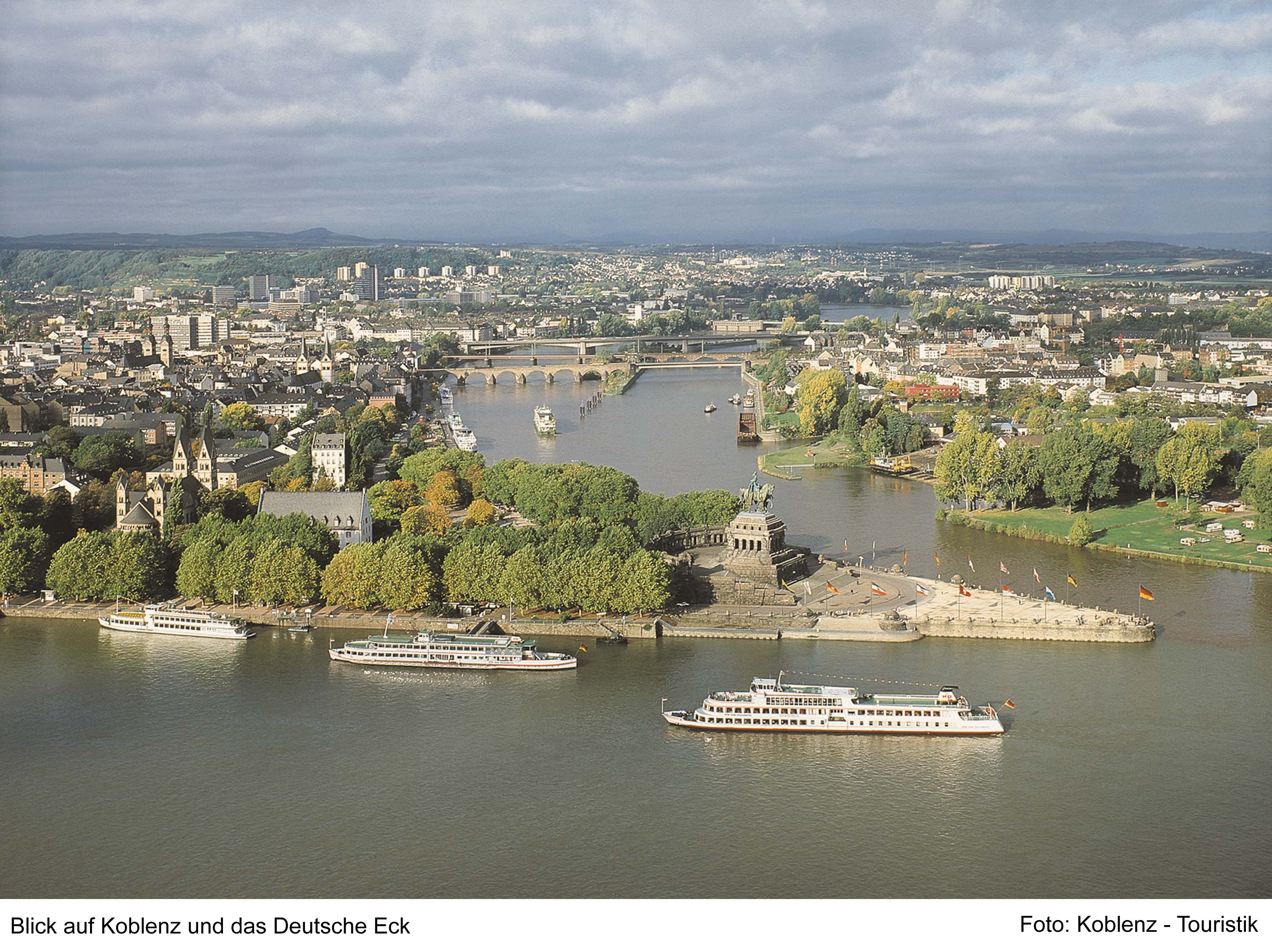 Située au confluent du Rhin et de la Moselle, Coblence est entourée par quatre massifs rhénans.La ville offre aux promeneurs un paysage urbain fascinant : ruelles romantiques et places historiques alternent avec des magasins, restaurants et bistrots chaleureux.